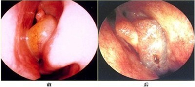 (图示:鼻窦炎前、后期的鼻内窥镜成像图)