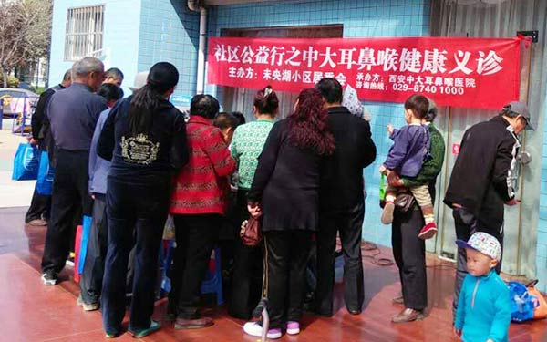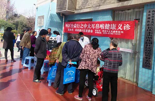 为进一步普及健康知识,帮助居民养成健康文明的生活方式,同时解决看病难的现状。3月31日上午,应西安市未央湖小区委员会邀请,西安新城中大耳鼻喉医院医护人员前往长庆未央湖花园社区开展“健康义诊进社区”服务活动,活动受到了社区居民的大力支持和热烈欢迎。